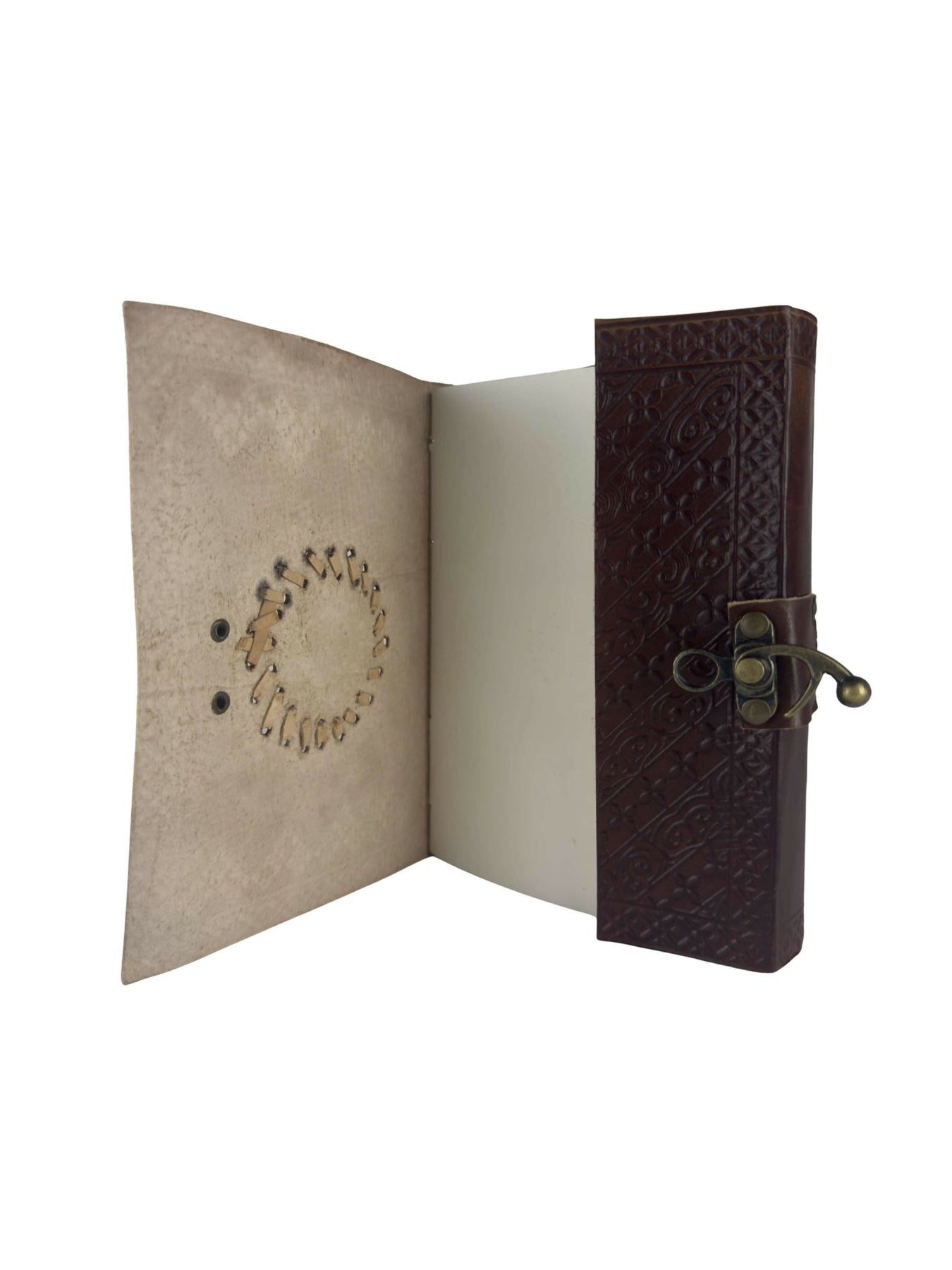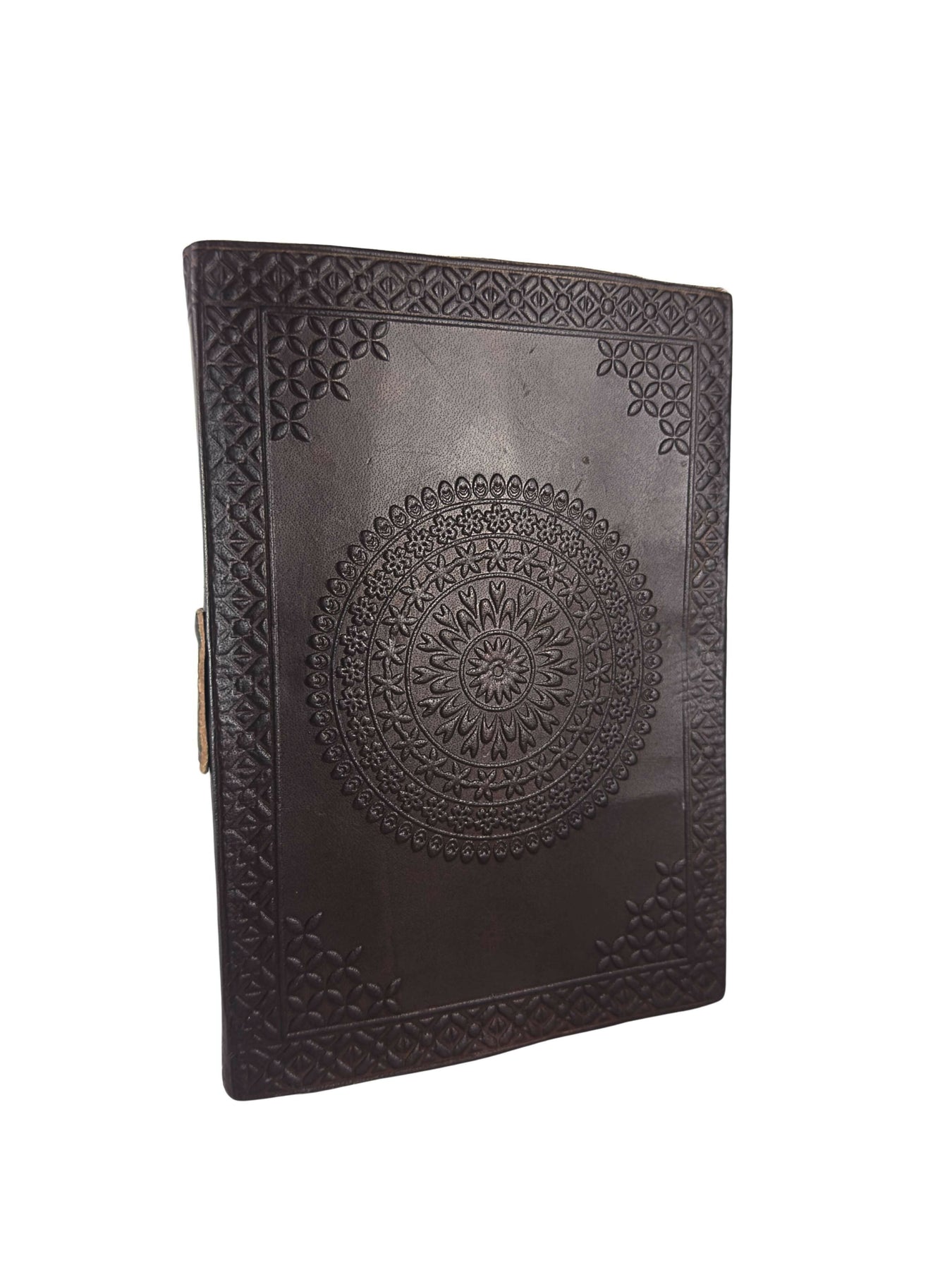 This handmade genuine leather notebook is adorned with a beautiful embossed mandala pattern, a symbol of harmony and creativity. Every detail is crafted by hand, offering a unique finish that combines elegance and authenticity.