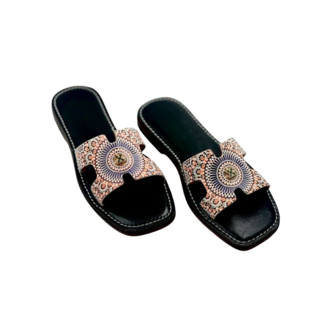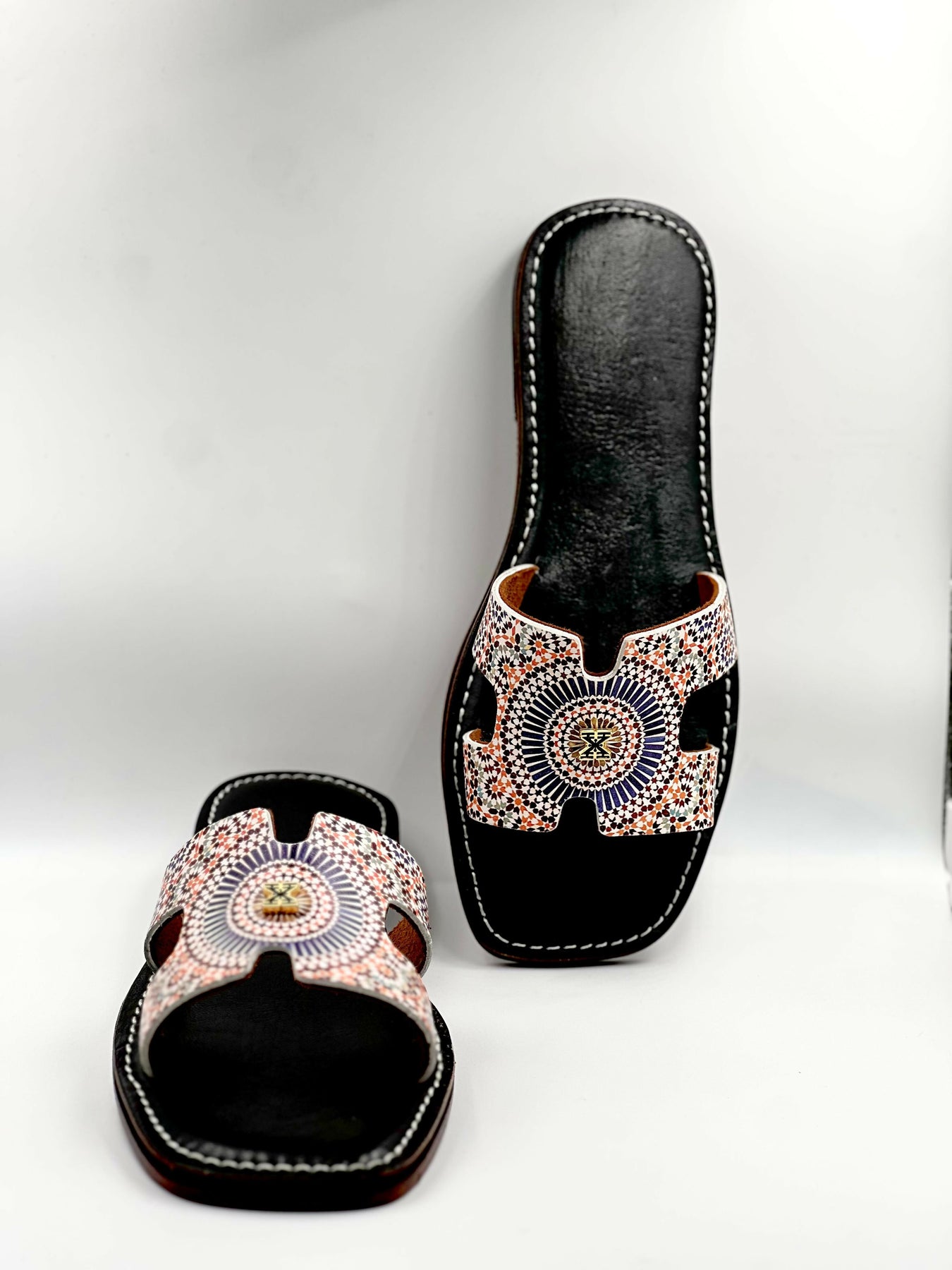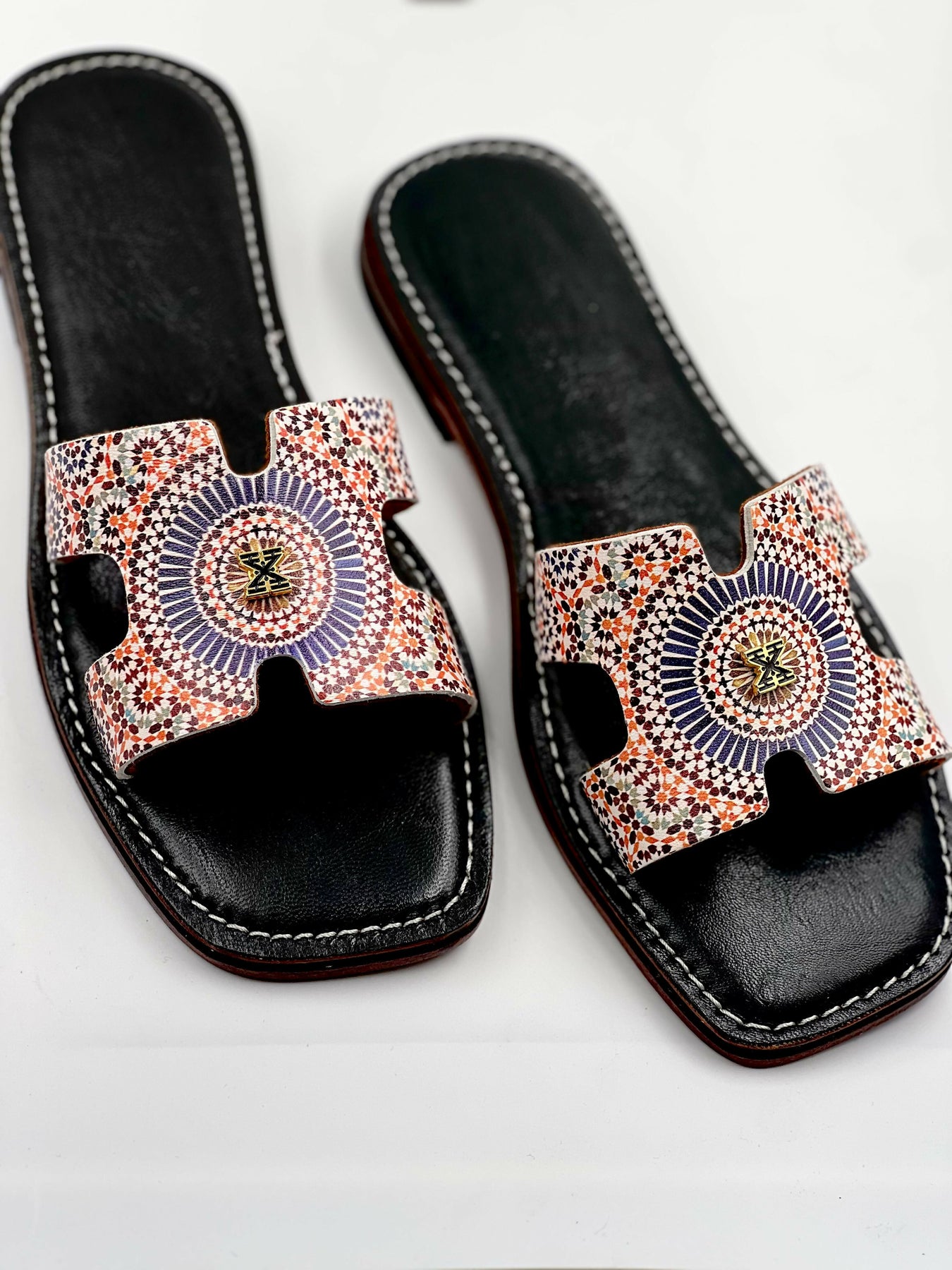 This Moroccan sandal is a piece of Moroccan craftsmanship that celebrates the beauty of Zellige with a touch of luxury. Made with high-quality Moroccan leather in Marrakech, each pair is handmade and reflects ancestral craftsmanship.