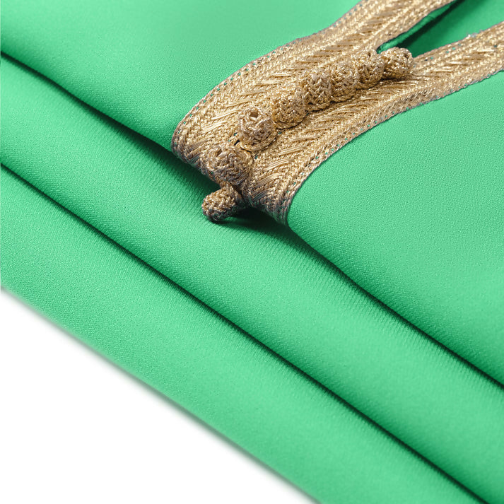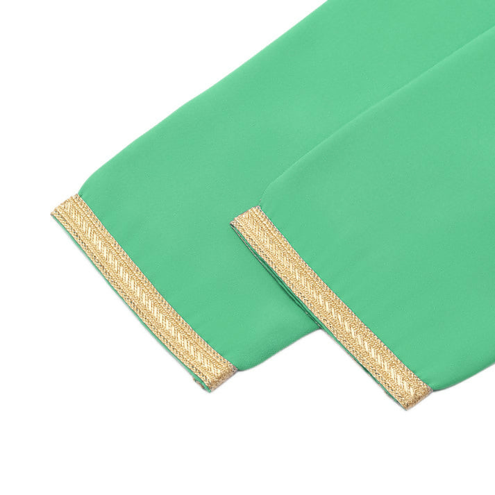 Elegant Jellaba for girls in silk crepe fabric, adorned with silk Aâkad and Sfifa as well as optional 4-thread mâalem embroidery, adding a refined, handcrafted touch.