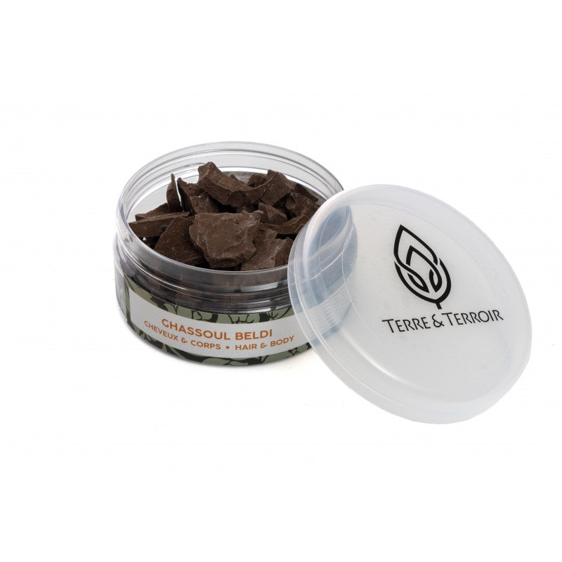 The Ghassoul, endemic clay of the piedmont of the Atlas, softens dynamism and cleans the skin by eliminating the excess of oil.