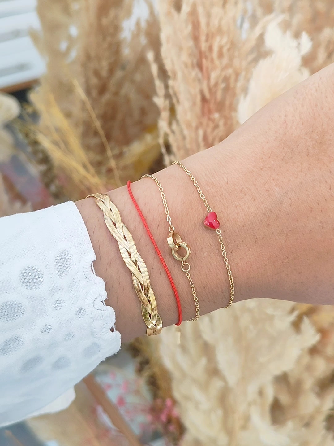 Get a stylish and trendy look with our pack of bracelets on sale. Made of gold-tone stainless steel, these bracelets add a touch of red for a unique style. Take advantage of this special offer to accessorize your love outfit. Treat yourself or give them to someone special.