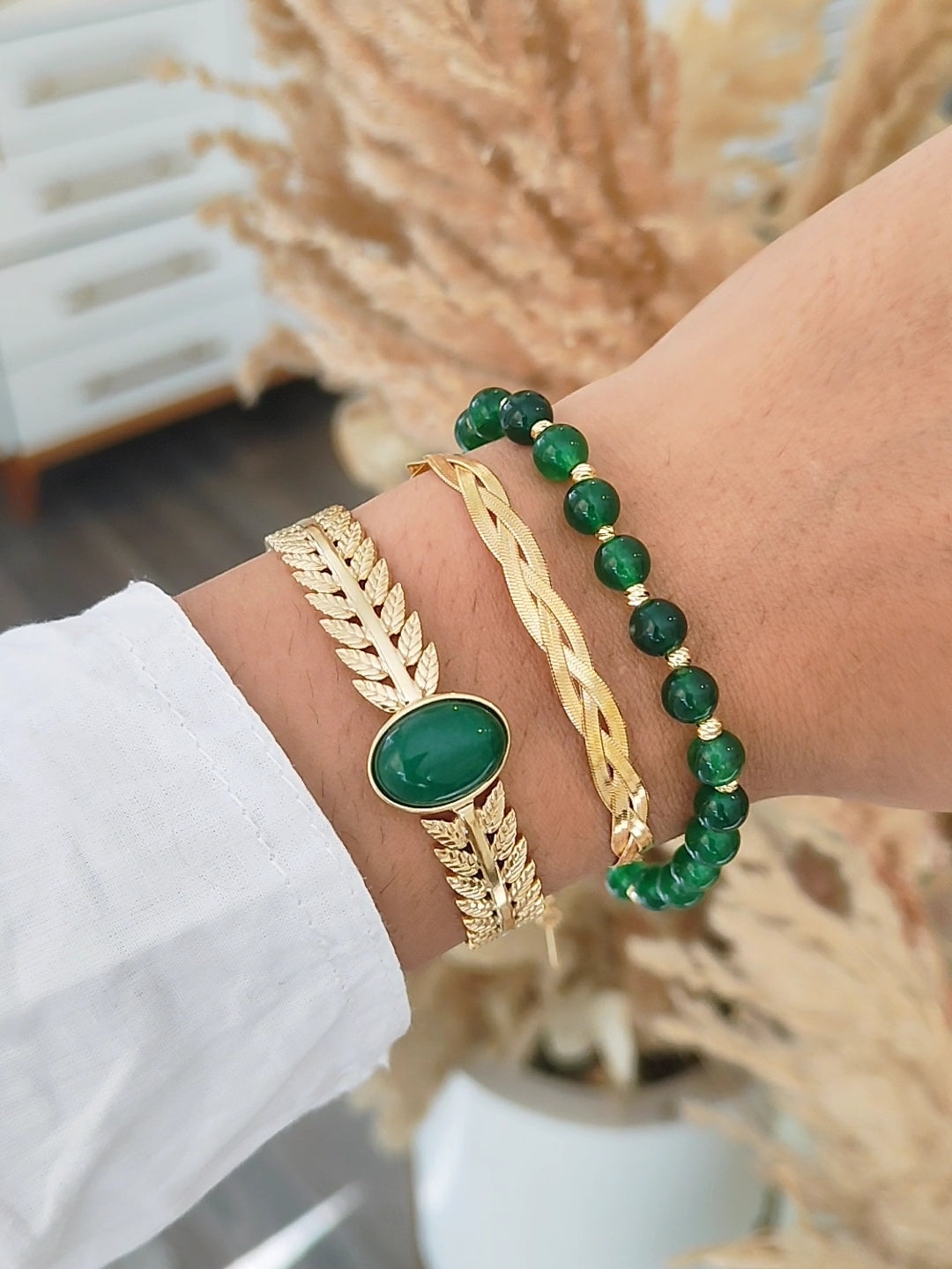 Pack of 3 gold stainless steel bracelets and natural stones, perfect for adding a touch of sophistication to any outfit. Take advantage of our promotion to get an elegant look at a great price. Natural stones add a unique touch to these resistant and durable bracelets.