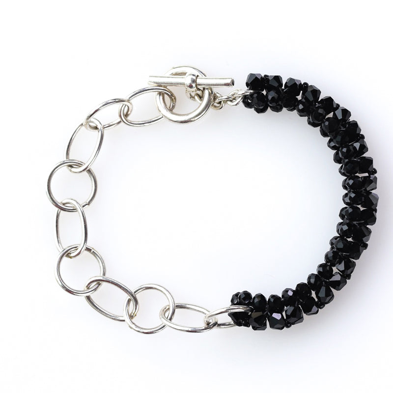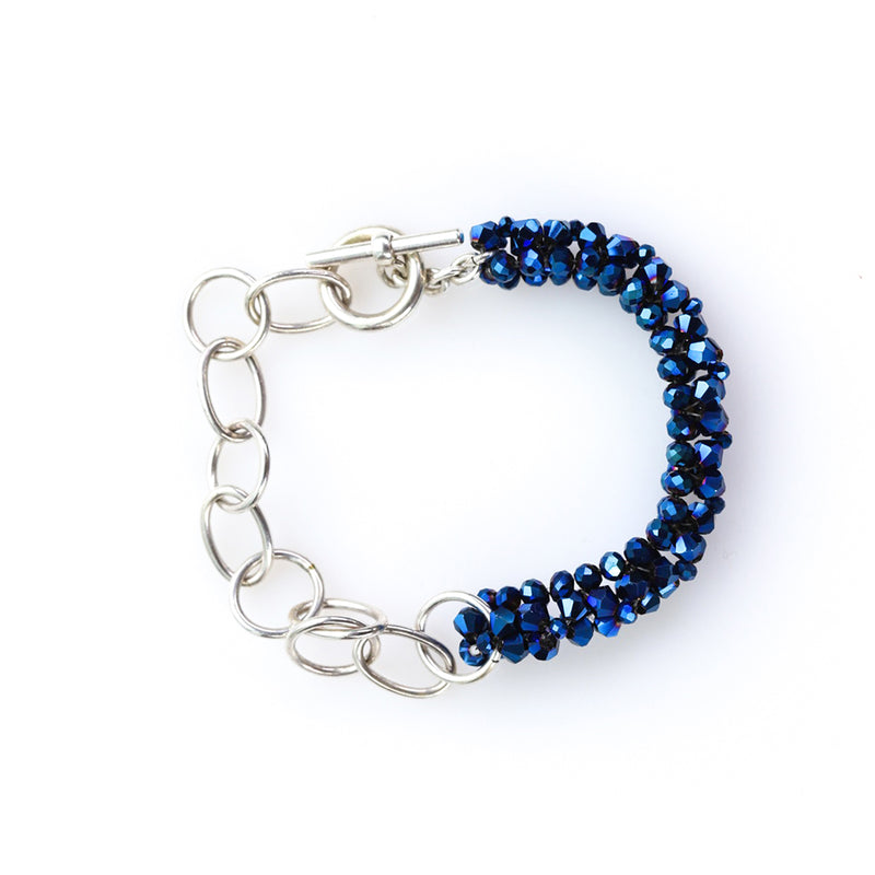 Half crystals and half silver, this bracelet is a Basic from the Galaxy collection. It's thin enough to match other accessories and large enough to adorn elegantly.